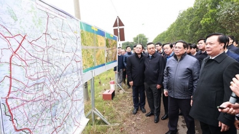 (VOVWORLD) - 在新年伊始从北到南视察督促国家重点工程和项目框架内,1月28日上午,越南政府总理范明政视察北南高速公路东线一期项目的梅山—45号公路段;探望慰问正在工地工作的干部、职工、施工人员和移民安置区群众并赠送年礼。