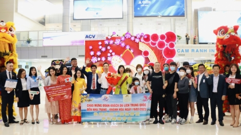 (VOVWORLD) - 庆和省旅游局1月19日在金兰国际机场举行仪式,欢迎因新冠疫情中断3年后,首批中国游客的到访。