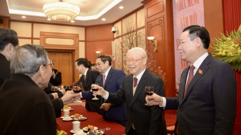 (VOVWORLD) - 值此2023年癸卯春节即将到来及越南共产党建党93周年之际,越共中央总书记阮富仲1月19日下午探望河内市党委、政府和人民并致以新春祝福。