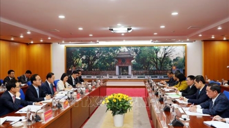 (VOVWORLD) -越南财政部长胡德福1月10日下午在河内与三星电子总裁兼首席财务官朴学奎(Park Hark Kyu)举行工作会议。