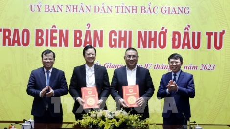 (VOVWORLD) - 1月7日下午,北江省人民委员会举行中国雅迪集团(Yadea)与北江省谅江县新兴工业区基础设施修建项目投资商 LIDECO 1 股份公司合作谅解备忘录交接仪式。