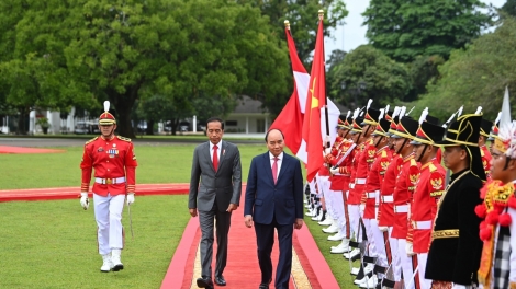 (VOVWORLD) - 应印度尼西亚总统佐科·维多多的邀请,越南国家主席阮春福21日至23日对印尼进行国事访问 。印尼总统佐科22日在总统府主持国家级仪式欢迎阮春福一行。