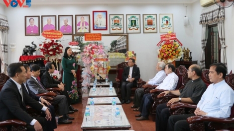 (VOVWORLD) - 越南祖国阵线中央委员会主席杜文战12月21日走访昆嵩省主教府慰问天主教信教同胞并致以圣诞祝福。