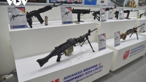 (VOVWORLD) - 2022年越南国际防务展12月8日至10日在河内举行。占地面积5万多平方米的展区,展示海陆空军多种武器、器材、装备和技术解决方案,以及网络空间作战设施,技术、后勤装设备。