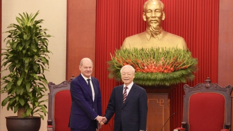 (VOVWORLD) - 越共中央总书记阮富仲11月13日在河内会见了正对越南进行正式访问的德国总理奥拉夫·朔尔茨(Olaf Scholz ),强调本次访问是两国关系的重要里程碑。
