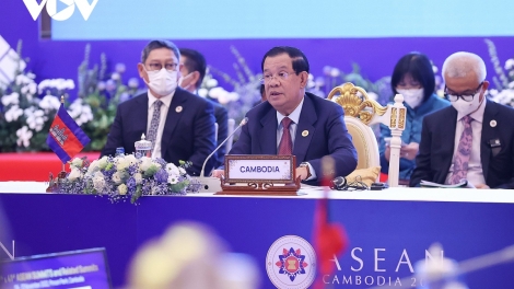 (VOVWORLD) - 第40届和第41届东盟峰会11月11日在柬埔寨金边正式开幕。东盟各国领导人、东盟秘书长及多个合作伙伴、国际组织代表出席。越南政府总理范明政率越南代表团出席开幕式。