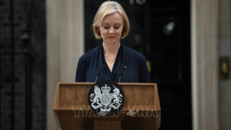 (VOVWORLD) - 英国首相利兹·特拉斯(Liz Truss)10月20日在唐宁街10号发表讲话时宣布,在任职六周后辞去保守党主席职务,并表示,保守党下周末将选出继任者。