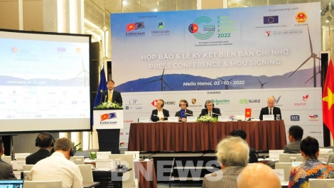(VOVWORLD) - 越南工贸部与越南欧洲商会3日在河内就2022年绿色经济论坛暨展览会联合举行新闻发布会。
