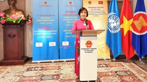 (VOVWORLD) - 越南常驻联合国、世界贸易组织及日内瓦其他国际组织代表团9月14日晚隆重举行越南国庆77周年和越南加入联合国45周年庆祝活动。