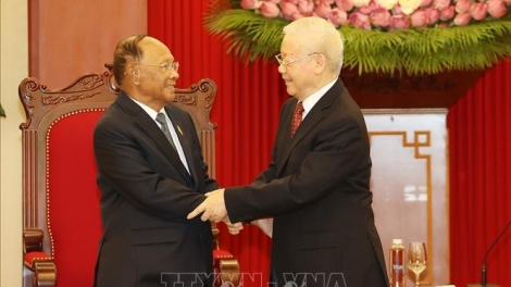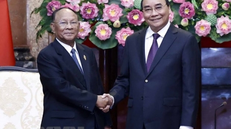 越共中央总书记阮富仲会见柬埔寨国会主席韩桑林