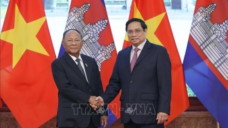 越南政府总理范明政会见柬埔寨国会主席韩桑林