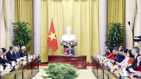 (VOVWORLD) -8月30日下午,越南国家主席阮春福在河内会见了出席越南红十字会国际大会、由国际红十字会与红新月会秘书长贾格纳特·查帕甘率领的国际代表团参会。