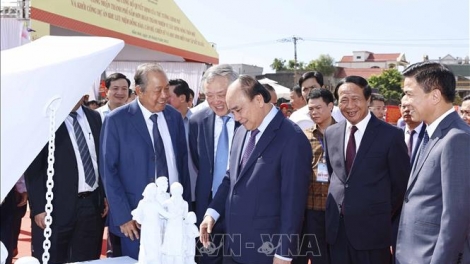 (VOVWORLD) - 越南国家主席阮春福8月28日上午,在清化省岑山市广进坊出席南方同胞、战士集结北方纪念区奠基仪式。
