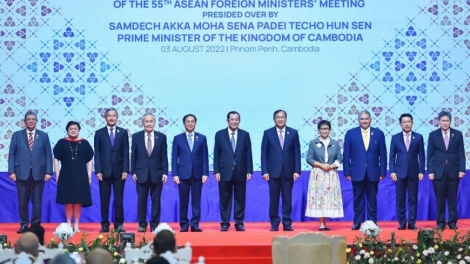(VOVWORLD) - 第55届东盟外长会(AMM-55)8月3日在柬埔寨首都金边正式开幕。越南外交部长裴青山同东盟其他国家外长、东盟秘书长出席会议。