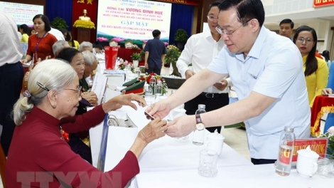 越南国会主席王庭惠会见广南省为革命立功者代表