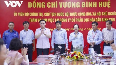 (VOVWORLD) -由越南国会主席王庭惠率领的中央工作团7月25日视察广义省平山石油化工和炼油股份公司(BSR)运营情况并与该公司领导人举行工作会议。