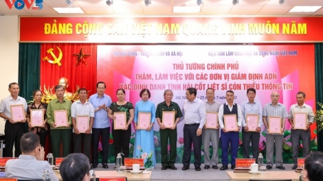 (VOVWORLD) - 7月25日下午在河内,越南政府总理范明政与国防部军事法医研究所、卫生部国家法医研究所和越南科学技术研究院生物技术研究所等缺乏信息烈士遗骸DNA检测单位举行工作座谈。