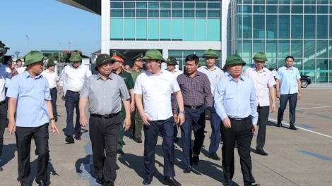 (VOVWORLD) - 7月24日上午,在义安省工作期间,政府总理范明政一行考察了荣市国际机场、炉门深水港建设规划区等多个项目。