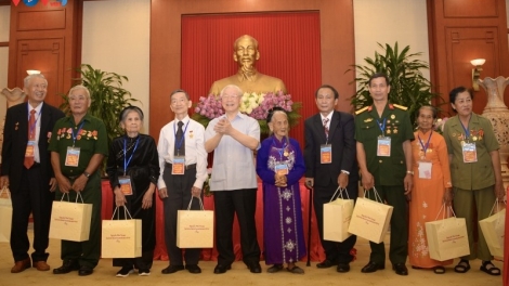 (VOVWORLD) - 值越南荣军烈士节75周年之际,越共中央总书记阮富仲7月23日下午在党中央总部会见全国75名为国立功者代表。