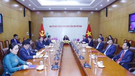 (VOVWORLD) -7月18日,越共中央政治局委员、中央书记处书记、中央组织部部长张氏梅与中共中央政治局委员、中央书记处书记、中央组织部部长、中共中央党校校长陈希通电话。