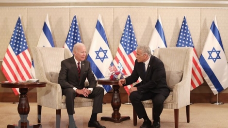 (VOVWORLD) - 7月14日,美国总统拜登和以色列总理拉皮德在以色列签署《耶路撒冷宣言》,其中美国重申对“两国方案”和确保以色列和巴勒斯坦人民享有公平对待、安全保障、自由和繁荣的长期一贯支持。