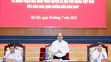 (VOVWORLD) - 越南国家主席、“2030年建设和完善越南社会主义法治国家战略及2045年方向”提案起草工作指导委员会”主任阮春福7月6日上午与越南最高人民检察院党组干事会就提案内容举行工作会议。
