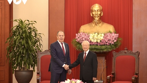 (VOVWORLD) -越南政府总理范明政7月6日在政府总部会见正对越南进行访问的俄罗斯外长拉夫罗夫。此访是在两国纪念双边关系提升至全面战略伙伴关系10周年的背景下进行的。