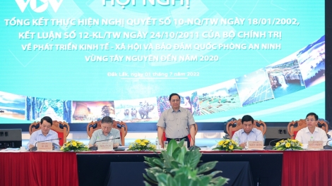 (VOVWORLD) - 越南政府总理范明政7月1日上午在多乐省出席越共中央政治局关于西原地区发展经济社会及保障国防安全的2002年1月18日第10号决议及2011年10月24日第12号结论的落实总结会议。