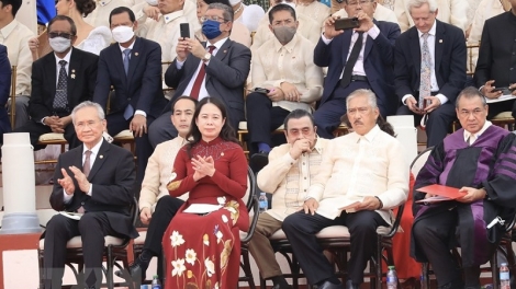 (VOVWORLD) - 越南国家副主席武氏映春6月30日代表越南国家主席阮春福率越南代表团出席在首都马尼拉举行的菲律宾新任总统马科斯(Ferdinand Romualdez Marcos Jr)的宣誓就职仪式。