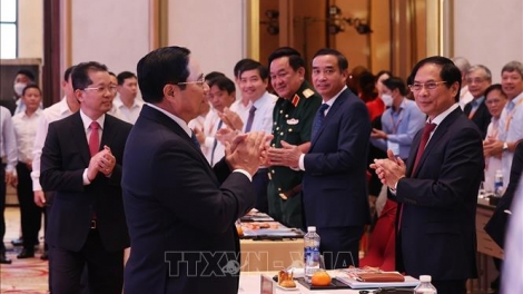 (VOVWORLD) - 越南政府总理范明政6月25日下午出席2022年岘港投资论坛。中央各部门、机关,全国各地方及国内外外交机构、企业和投资者等600多名代表出席论坛。此外,其他300名代表以线上方式参会。