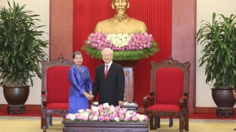 (VOVWORLD) -6月24日,越共中央总书记阮富仲在河内会见正对越南进行正式访问并出席越柬建交55周年纪念典礼的柬埔寨副首相兼议会联络与监察部大臣、柬越友好协会主席梅森安(Men Sam An)。