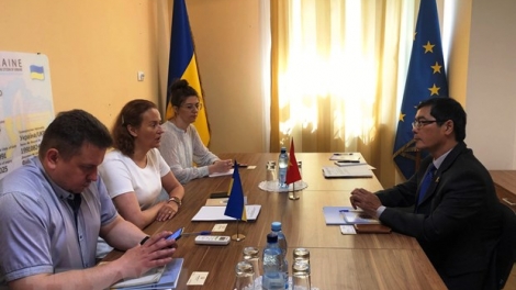 (VOVWORLD) -越南驻乌克兰大使阮红石6月21日在乌克兰移民局总部与乌克兰移民局和外交部代表举行工作会议。