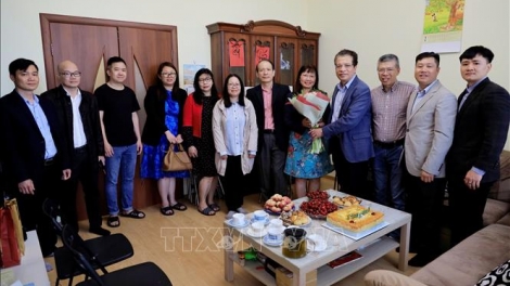 (VOVWORLD) -越南驻俄罗斯大使邓明魁6月21日访问越南通讯社驻俄罗斯记者站,向正在所在国工作的越南新闻工作者致以祝贺。陪同邓明魁的有越南驻俄罗斯大使馆各部门负责人。