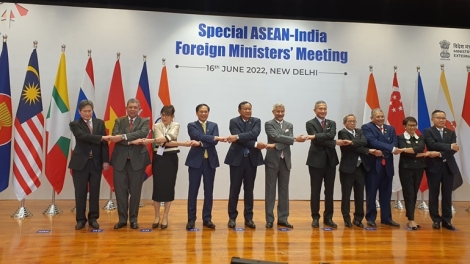 (VOVWORLD) - 越南外交部长裴青山和东盟各国外交部长、高级代表6月16日同印度外交部长出席纪念双方建立伙伴关系30周年的东盟-印度特别外长会议。