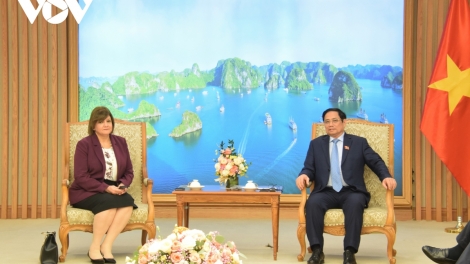 (VOVWORLD) -越南政府总理范明政6月15日在政府总部会见前来礼节性拜会的埃及驻越大使阿迈勒·阿卜杜勒·卡德尔·穆尔西·萨拉马(Amal Abdel Kader Elmorsi Salama)。