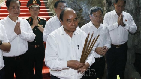 越南国家主席阮春福在20号决胜路英雄烈士祠堂举行上香仪式