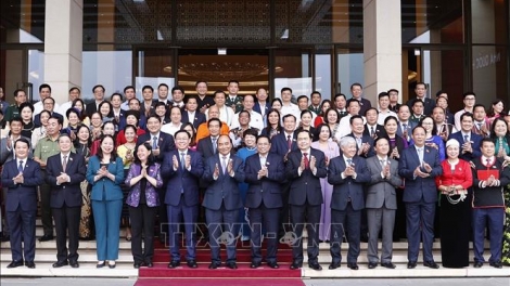 (VOVWORLD) - 越南党、国家领导人5月25日下午在国会大厦会见第十五届国会少数民族代表。越南国家主席阮春福、政府总理范明政、国会主席王庭惠出席活动。