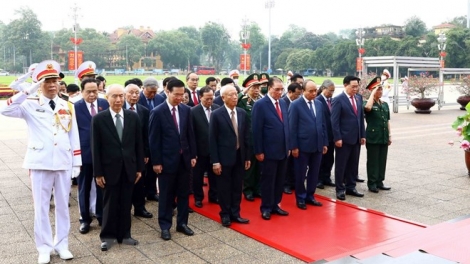 (VOVWORLD) - 值胡志明主席诞辰132周年之际,越共中央委员会、国家主席、国会、政府、越南祖国阵线中央委员会代表团5月19日前往胡志明主席陵敬献花圈和入陵瞻仰胡志明主席遗容。