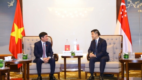 (VOVWORLD) - 对越南进行正式访问期间,新加坡国会议长陈川仁(Tan Chuan-Jin)5月19日上午会见了前来礼节性拜会的越南国会秘书长、国会办公厅主任、越南-东盟友好议员小组主席裴文强。