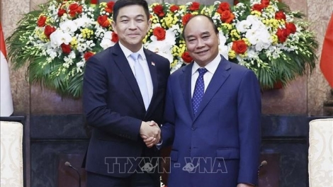 (VOVWORLD) - 越南国家主席阮春福5月19日下午在主席府会见新加坡国会议长陈川仁(Tan Chuan-Jin)时表示,陈川仁在第31届东南亚运动会在越举行期间访问越南,是东道主越南的荣幸,也是新加坡体育代表团的鼓舞源泉,将为本届东运会的成功做出积极贡献。