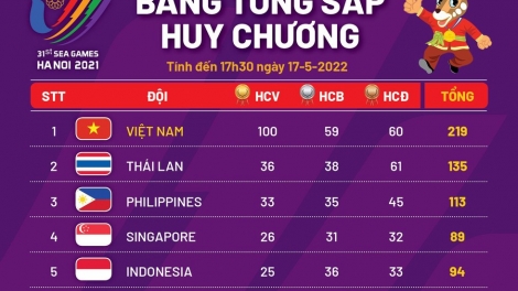 (VOVWORLD) -越南体育代表团以105枚金牌仍保持奖牌榜第一的位置。排名第二的是泰国,获得43枚金牌。