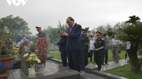 (VOVWORLD) - 5月17日至18日在奠边省考察期间,越南国家主席阮春福到A1国家烈士陵园上香缅怀英雄烈士, 参观奠边府历史性大捷博物馆。