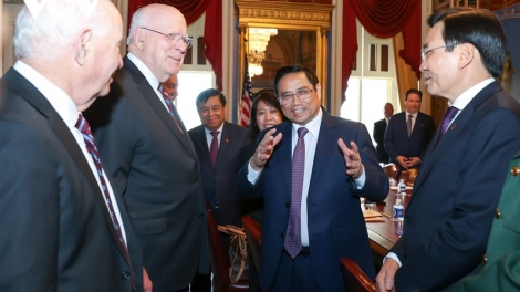 (VOVWORLD) - 越南政府总理范明政5月11日在美国华盛顿会见美国参议院临时议长帕特里克•莱希(Patrick Leahy)及美国一些重量级参议员。