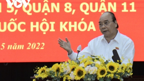 (VOVWORLD) - 在胡志明市接触选民期间,5月12日上午,越南国家主席阮春福同胡志明市第三号选举单位国会代表团与第5郡、第8郡和第11郡的选民接触。