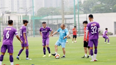 (VOVWORLD) -5月4日,在富寿省综合体育训练场,越南U23男子足球队主教练朴恒绪(Park Hang-seo)和全体球员怀着在第31届东运会男子U23足球比赛中再次夺冠的决心继续训练,前锋进灵同球员们参加训练。
