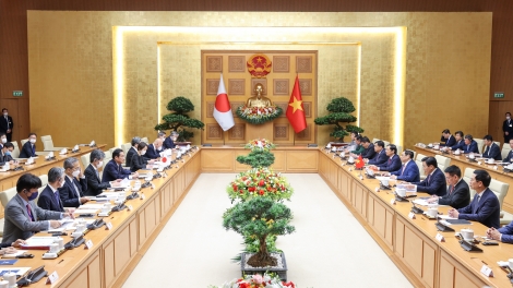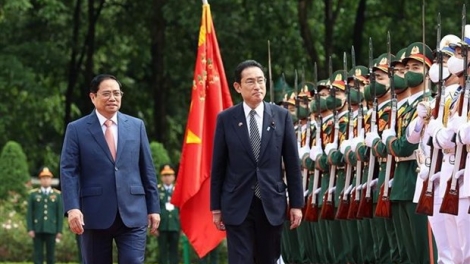 (VOVWORLD) - 越南政府总理范明政5月1日上午在主席府为自4月30日至5月1日对越南进行正式访问的日本首相岸田文雄及日本政府高级代表团举行正式欢迎仪式。