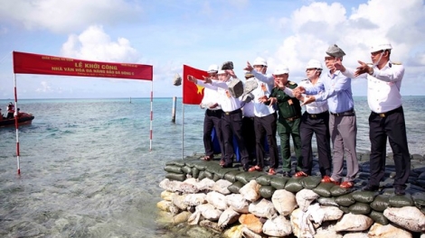 (VOVWORLD) - 4月19日至27日,以海军军种政委阮文蓬中将为首的工作代表团走访慰问庆和省长沙岛县和DK1高脚屋干部、战士和人民。