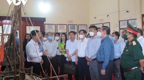 (VOVWORLD) - 在广义省李山岛县走访调研期间,越共中央宣教部部长阮仲义4月14日率领宣教部工作代表团前往岛上兼管北海黄沙队纪念台上香缅怀,参观北海黄沙队资料陈列馆,同时与李山岛县县委常委举行工作会议。