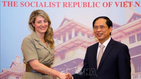 (VOVWORLD) -4月13日,越南外交部部长裴青山与正对越南进行正式访问的加拿大外交部部长梅兰妮·乔利(Mélanie Joly)举行会谈。