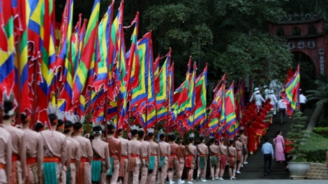 (VOVWORLD) - 祭祀雄王敬香仪式4月10日上午在富寿省雄王庙国家级历史遗迹区义岭山顶上的敬天殿举行。国家主席阮春福恭敬上香、献花和献祭品,缅怀和感恩历代雄王的立国建国功德,祈求国泰民安、社稷繁荣、国家日益发展、强大。